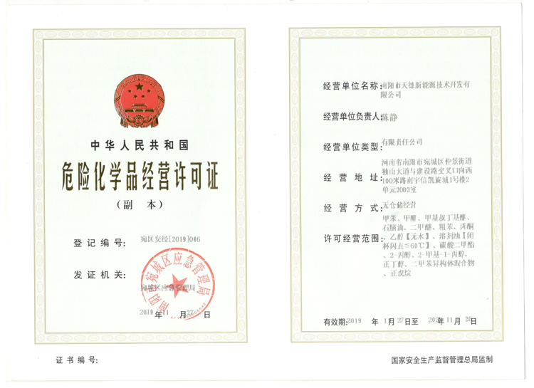 南陽(yáng)市天德新能源技術(shù)開(kāi)發(fā)有限公司是我國(guó)現(xiàn)代化高科技甲醇汽油添加劑、甲醇柴油添加劑專(zhuān)業(yè)企業(yè)之一,是集添加劑產(chǎn)品服務(wù)于一體的綜合性實(shí)體。公司成立于2019年,注冊(cè)資金100萬(wàn)元。公司坐落于中國(guó)歷史文化名城河南省南陽(yáng)市中心,地理位置優(yōu)越,交通方便。
